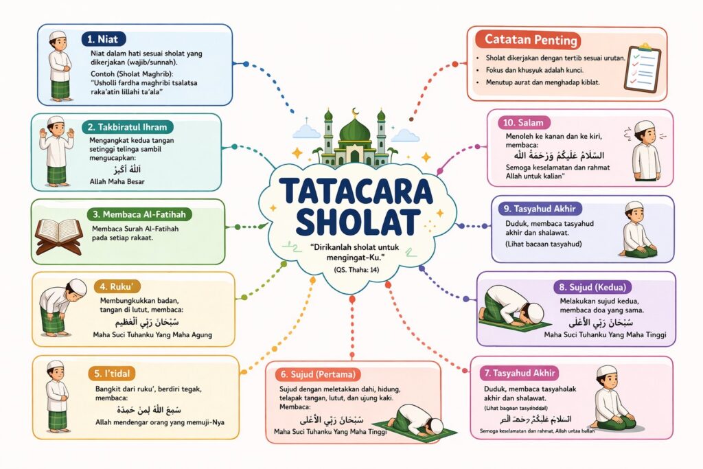 Pembelajaran Pendidikan Agama Islam memiliki peran penting dalam membentuk pemahaman serta praktik ibadah peserta didik, khususnya dalam pelaksanaan sholat sebagai kewajiban utama dalam Islam. Namun, dalam proses pembelajaran di kelas, materi tata cara sholat sering kali disampaikan secara tekstual dan verbal, sehingga kurang memberikan gambaran utuh mengenai urutan dan keterkaitan antar langkah dalam pelaksanaan sholat.