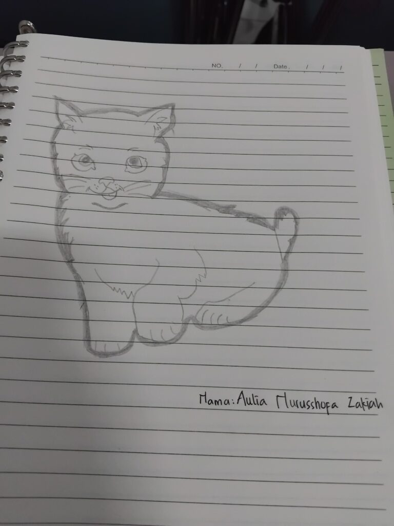 Perkenalkan nama saya Aulia Nurusshofa Zakiah,,alasan saya menggambar kucing karena terinspirasi bahwa kucing mempunyai sifat sabar, baik hati, dan selalu membuat orang lain tertawa karena kelucuannya saya ingin menjadi guru yang memiliki hati sabar dan tidak memberatkan mereka yg saya ajarkan